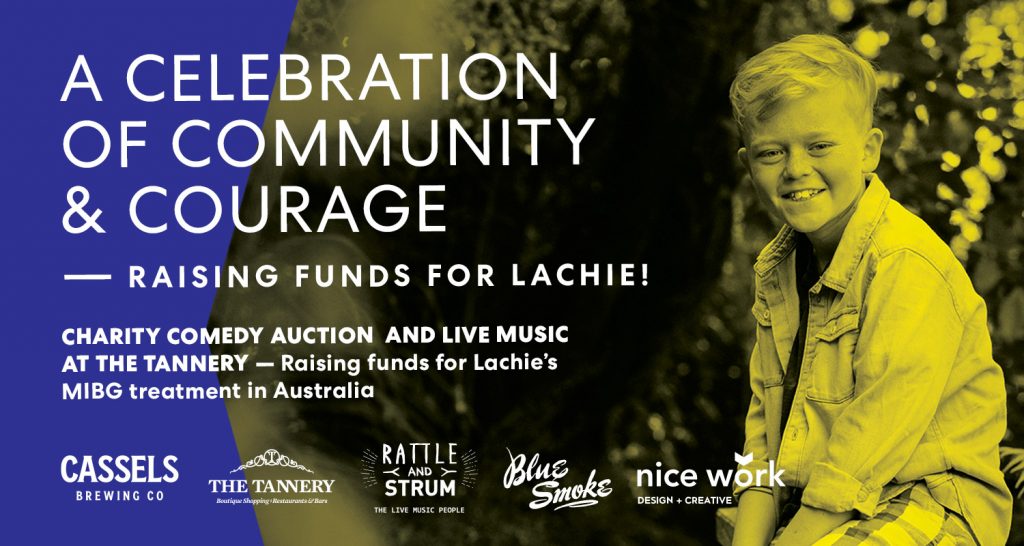 Join us at Cassels Blue Smoke on March 14th for an evening of comedy, auctions, raffles and music as we raise funds for Lachie’s MIBG treatment in Sydney. Ticket sales and auction proceeds go directly towards Lachie’s MIBG treatment in Sydney.